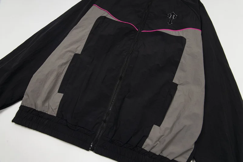 Trapstar Windproof Sport Color Block 3D Letter Embroidery Jacket Set Loose Zipper Outerwear Casual Long Pants Unisex